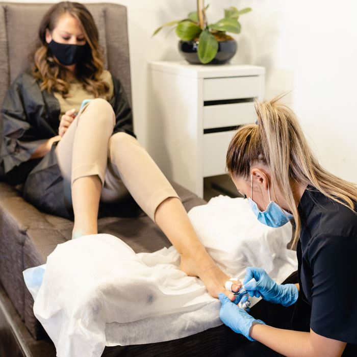 Gönnt euren Füßen die Pflege, die sie verdienen! Unsere professionelle Pediküre sorgt für gepflegte, schöne Füße und samtweiche Haut. Ob Nagelpflege, Entfernung von Hornhaut oder eine entspannende Fußmassage – bei uns wird jeder Schritt zur Wohlfühl-Oase.